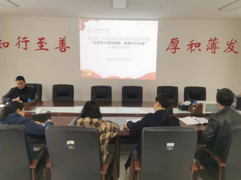 本网讯(后勤管理处 魏瑞君/文)2021年10月29日上午09:30,后勤管理处教师党支部在后勤楼301会议室开展了“弘扬伟大建党精神,做新时代先锋”的主题党日活动。