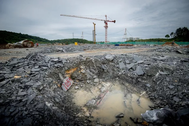 站在新校区建设工地,杂草丛生的荒坡已不复存在,映入眼里的是如火如荼的施工现场,一派勃勃生机。