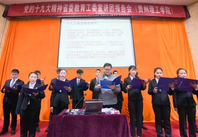 罗凌从党的十九大的主题和主要成果、习近平新时代中国特色社会主义思想、过去五年的历史性成就和历史性变革、中国特色社会主义进入新时代、我国社会主要矛盾的变化、两个一百年奋斗目标的战略部署、我国经济社会发展重大战略部署、坚定不移推进全面从严治党、深刻领会认真贯彻习近平总书记在贵州代表团重要讲话精神等九个方面为同学们作了党的十九大精神学习辅导报告。