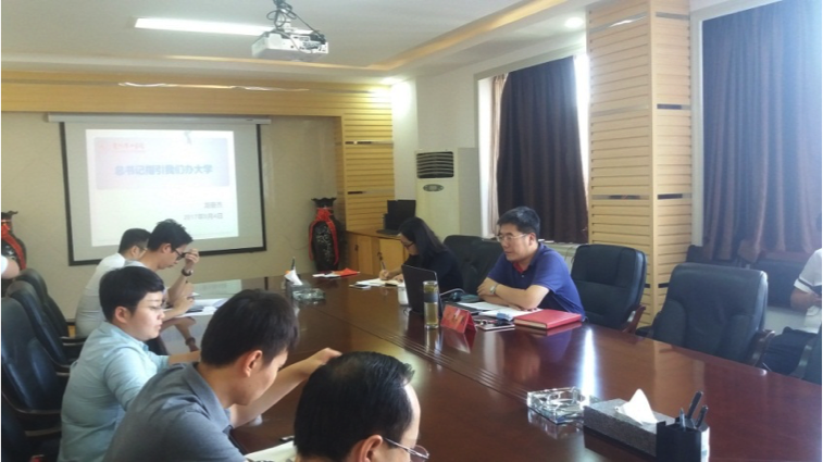 本网讯(顾亚丽 钟小勇) 为深入推进“两学一做”学习教育常态化制度化,严格落实基层党组织“三会一课”制度,9月4日下午,校党委副书记、校长龙奋杰同志给机关党委第六党支部全体党员讲授了一堂生动的题为《总书记指引我们办大学》的专题党课。