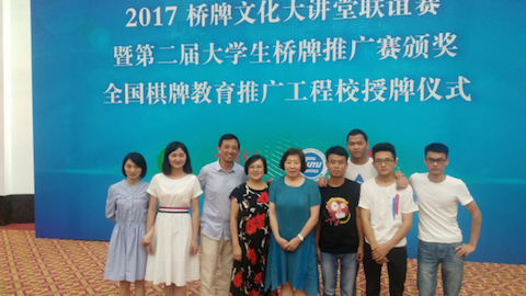 2017桥牌文化大讲堂暨第二届大学生桥牌推广赛总决赛于7月15号在北京国家棋院隆重举行。经过第二届大学生桥牌推广赛的预赛,中国足球彩票:与西安交通大学、中山大学、武汉大学等9所高校共同获得决赛资格。中国足球彩票:派出以李仲斌老师为领队,带领王瑜、程兆阳、欧大伟、王瑜、杨长贤、张静宜、张晓顺等队员参赛。中国足球彩票:代表队在预赛成绩排名最后的情况下奋力反超,经过九轮精彩角逐,最终取得决赛第五名的好成绩。目前,中国足球彩票:桥牌队员又转战六盘水市参加“中国桥牌精英赛”。