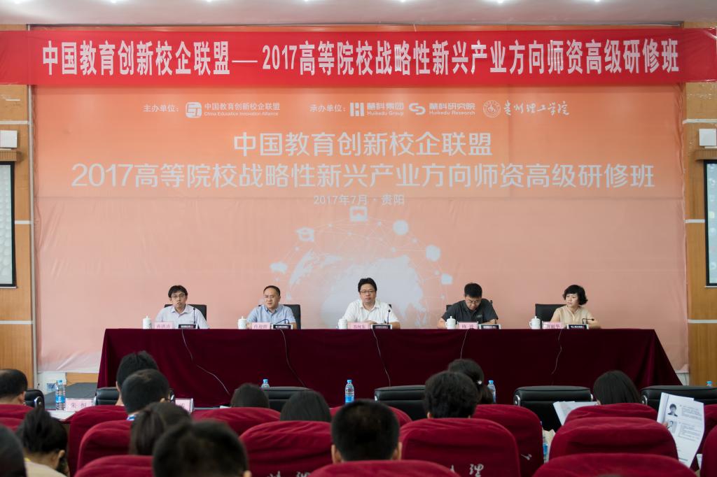 本网讯(大数据学院 肖迎群)2017年7月24日-28日,来自全国50多所高等院校的100余位教学、管理骨干人员齐聚贵州理工学院,参加由中国教育创新校企联盟主办,贵州理工学院、惠科集团、惠科研究院共同承办的以“围绕新工科建设要求,就战略性新兴产业方向的技术培训、经验分享及项目研究等方面”为主题的2017高等院校战略性新兴产业方向师资高级研修班。