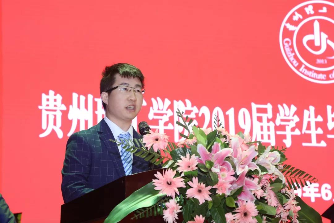 党委书记曾羽以“到脱贫攻坚主战场经受考验茁壮成长”为题,深情寄语2019届毕业生。曾羽书记指出,你们生逢其时、责任在肩、使命光荣。你们将成为这个伟大时代的见证者!你们的奋斗将凝聚成为国家前进的动力,你们的梦想将构筑成为中华民族伟大复兴的梦想,你们的力量将汇聚成为决战决胜脱贫攻坚的蓬勃力量。希望你们积极投身脱贫攻坚主战场,到脱贫攻坚主战场上去经受考验、茁壮成长。勉励同学们要经受考验、茁壮成长,必须胸怀祖国、立远大志向。以“逢山开路、遇水架桥”的精神勇担责任,激发出自身无限的潜能,不忘初心,牢记使命,以报效国家为己任,成长为政治过硬、信念坚定的新时代好青年!要经受考验、茁壮成长,必须心怀感恩、练过硬本领。在社会大课堂中增长知识、锤炼品格,在工作中增长才干、练就本领,以真才实学服务人民,以创新创造贡献国家,在为祖国、为人民、为民族、为人类的奉献中焕发出更加绚丽的光彩!成长为本领过硬、感恩奋进的新时代好青年!要经受考验、茁壮成长,必须磨练意志、具奉献精神。以坚强的意志和品质、积极向上的思想,投身于贵州波澜壮阔的脱贫攻坚战场,投身于如火如荼的农村产业革命,为决胜脱贫攻坚、决胜小康,开创百姓富、生态美的多彩贵州新未来作出更大贡献!成长为思想过硬、能力超强的新时代好青年!要经受考验、茁壮成长,必须兼具智慧、展蓬勃力量。用智慧和力量,激发决战决胜脱贫攻坚的内动力,引领时代风尚、传播社会正能量、唱响多彩贵州主旋律,努力成为脱贫攻坚政策的“解说员”,成为带领群众脱贫致富的“参谋家”,成为农村和各级政府职能部门、企业沟通的“润滑剂”!成长为作风过硬、智勇双全的新时代好青年!