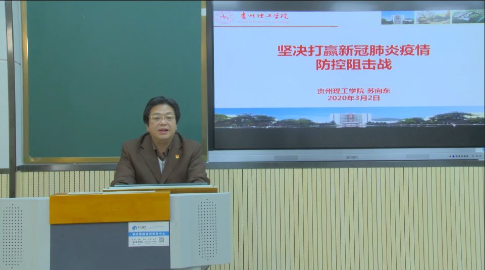 苏向东从党中央国务院、省委省政府在疫情发生后采取的“硬核”措施,特别是国家领导人深入疫情一线调研指导抗疫工作,全国19个省份对口支援湖北,讲到贵州理工人捐资、捐物;从奋战在一线的共产党员不忘入党初心进社区、入住户、守卡点,讲到无数白衣战士脸上深深的面罩压痕;从火神山、雷神山医院的修建过程,讲到国际社会对我国抗击疫情的支持和帮助。他用富有感染力的语言引导学生们深刻领会中国特色社会主义制度的优越性、中国共产党员的先锋模范作用,以及中国力量和中国智慧,深刻领会什么是人类命运共同体。