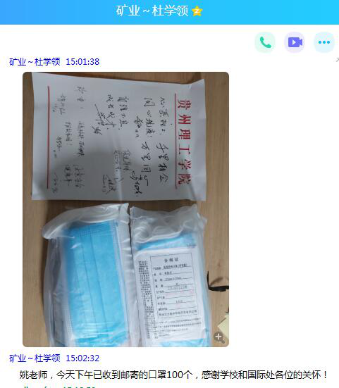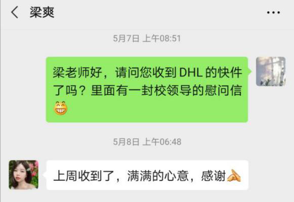 其他海外留学老师们在收到物资的第一时间也纷纷向国际交流与合作处进行了反馈:“投之以木桃,报之以琼瑶,一路走来,感谢有您!” “收到九千公里外“理”的来信,心中倍感关怀,感谢学校与各位领导对于理工人的关心与支持” “收到单位领导的慰问信,感谢学校关心,愿一切顺利!” “学校的关心已经收到了,真的非常感动,请向学校领导们转达我的感激和问候” “物资收到,满满的心意,感谢” “感谢学校领导和国际处的关怀!”。