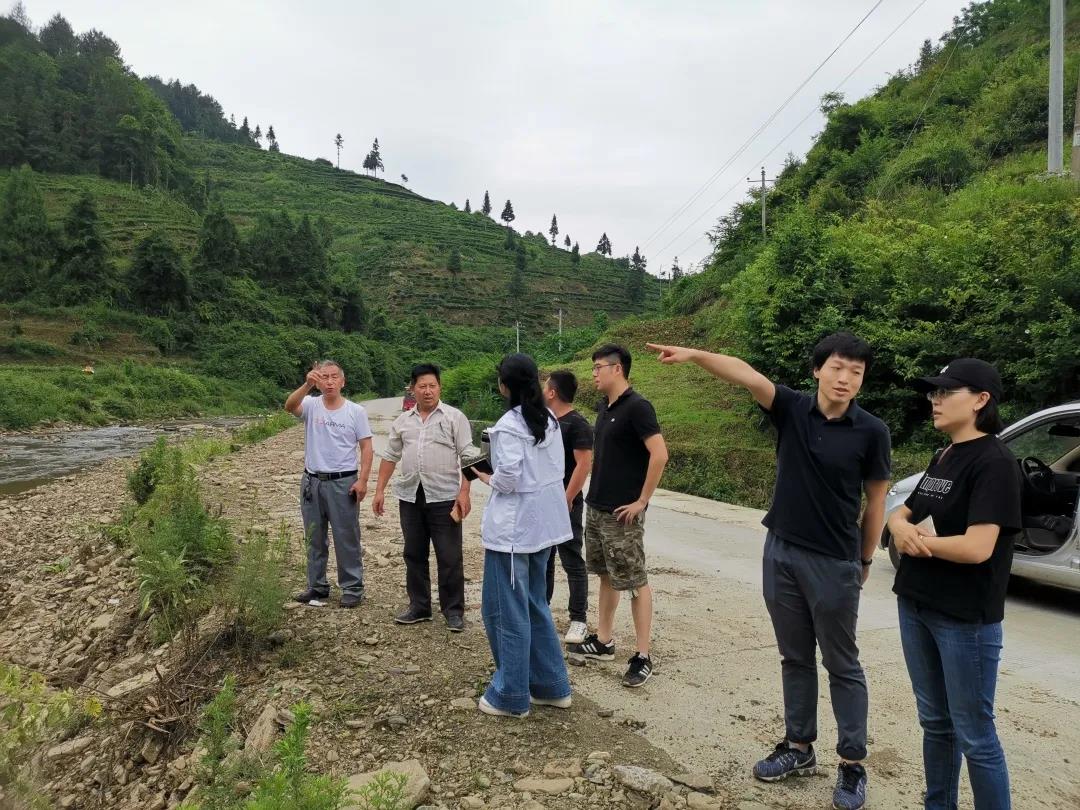 学院党总支2019年实施“一总支一项目”,帮助新金龙村修复被洪水损坏的灌溉水渠。图为学院一行实地查看水渠修复情况