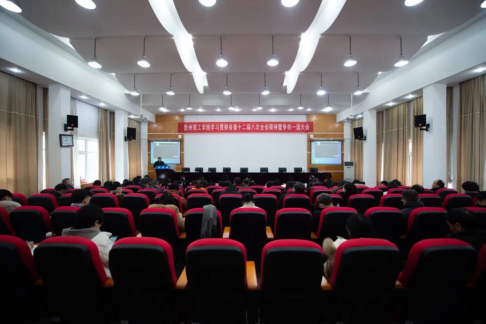 本网讯 为深入学习贯彻省委十二届八次全会精神,进一步推进学校内涵式高质量发展,2020年12月18日学校在喀斯特报告厅召开学习贯彻省委十二届八次全会精神暨争创一流大会。校党委委员曾羽、苏向东、吴次南、高勇、胡兴灿、林长松、张开智、左柏州、李朋出席,全体处科级干部、各基层党总支组织员、各教研室(实验室)负责人、教学科研科负责人、教师代表参加了会议。会议由党委书记曾羽主持。