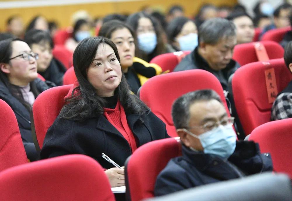 来校考察的长顺县党政代表团全体成员、学校全体处级干部、脱贫攻坚工作专班全体成员及师生代表聆听了报告。