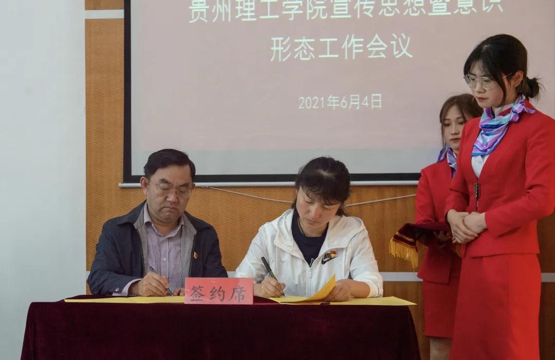 会上,党委书记曾羽作题为“守正创新 担当使命 为学校高质量发展提供精神动力和思想保证”的讲话,并代表学校党委与相关部门和学院负责人代表签订了意识形态工作责任书。高勇传达了全国、全省宣传部长会议精神并对做好当前意识形态工作作了相关要求,党委委员、党委宣传部部长、党委统战部部长李朋作了宣传思想暨意识形态工作报告,学生工作部(处)、教务处、马克思主义学院负责人分别作交流发言。