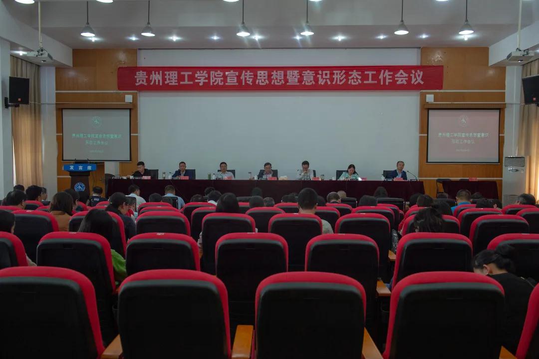 本网讯 2021年6月4日,贵州理工学院宣传思想暨意识形态工作会议在喀斯特报告厅召开。校领导曾羽、高勇、胡兴灿、贺梦依、林长松、左柏州、李朋出席会议,党委副书记高勇主持会议。