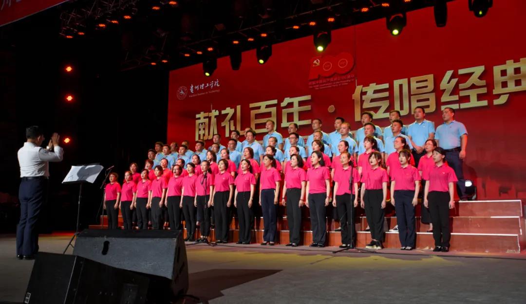 本网讯(教师工作处)栖凤山下红旗如画,阿哈湖畔歌声如潮! 为庆祝中国共产党成立100周年,讴歌中国共产党团结带领中国人民为实现中华民族伟大复兴而不懈奋斗的百年光辉历程,更加凝聚和激发全校师生爱党爱国热情,6月27日晚19时,贵州理工学院在蔡家关校区逸夫大礼堂举行“献礼百年·传唱经典”师生合唱比赛。党委委员曾羽、苏向东、吴次南、高勇、胡兴灿、贺梦依、林长松、张开智、左柏州、李朋,校长助理莫立坡参加活动,1300余名师生观看了比赛。