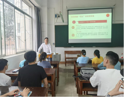 胡兴灿以“以史明志、不忘初心,传承红色基因”为题,带领大家学习了习近平总书记在庆祝中国共产党成立100周年大会上的重要讲话精神。他结合“四史”宣传教育要求,勉励同学们深入学习党史、新中国史、改革开放史、社会主义发展史,深刻认识中国共产党为国家和民族作出的伟大贡献,深刻感悟中国共产党始终不渝为人民的初心宗旨,学习中国共产党推进马克思主义中国化形成的重大理论成果,传承中国共产党在长期奋斗中铸就的伟大精神,坚定不移听党话、跟党走,在全面建设社会主义现代化国家伟大实践中建功立业。