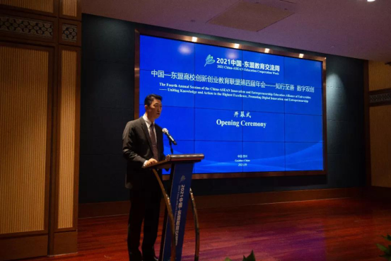2021年9月24日,由贵州理工学院主办,中国高校创新创业教育联盟、中国—东盟高校创新创业教育联盟、江苏大学、成都大学、广西师范大学、合肥学院协办的2021中国-东盟教育交流周“中国-东盟高校创新创业教育联盟第四届年会”在中国-东盟教育交流周永久会址红枫厅举行。