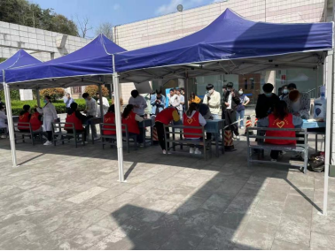 3月18日上午,师生们在医护人员及工作人员的引导下,佩戴口罩、依次排队、扫码、测温、登记、采样,整个过程工作人员认真负责,各部门配合默契,蔡家关、贵安两校区同时开展。截止下午5点,两校区师生666人以及后勤服务商人员454人完成核酸采集检测。
