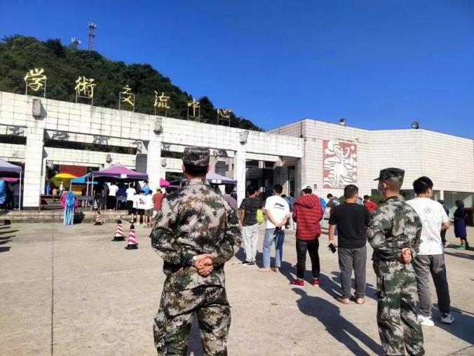 24名同学组成了这只退役军人志愿者队。其中,材料学院罗鸿伟同学刚从部队退伍返校,按照防疫规定解除隔离以后还没来得及办理入学手续,就投入到了紧张的防疫工作中,从军营到校园无缝衔接,没有一丝懈怠,真正体现了军人本色。在核酸现场,退役军人志愿者们正在耐心引导参加核酸检测的同学们。全员核酸采集是一个艰巨且重大的任务,这抹橄榄绿在现场坚守了长达5个小时,维护秩序、保障物资、指引通道,以平凡的身份在平凡的岗位上做着不平凡奉献,有效保障了采集任务的完成。