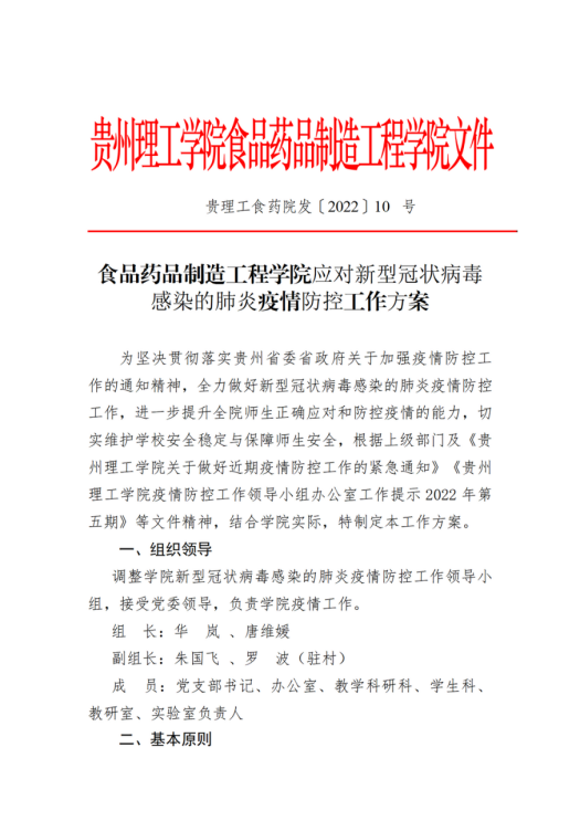 9月3日,学院党总支立即修订《食品药品制造工程学院应对新型冠状病毒感染的疫情防控工作方案》《食品药品制造工程学院应对新型冠状病毒感染的疫情学生防控工作方案》和《食品药品制造工程学院疫情形势下线上教学工作预案》,制定疫情防控期间院领导开展“五个一”活动计划、院领导联系基层工作计划和2022级新生贯穿教育工作计划等,确保防控隔离不隔责任,人未在岗犹胜在岗。