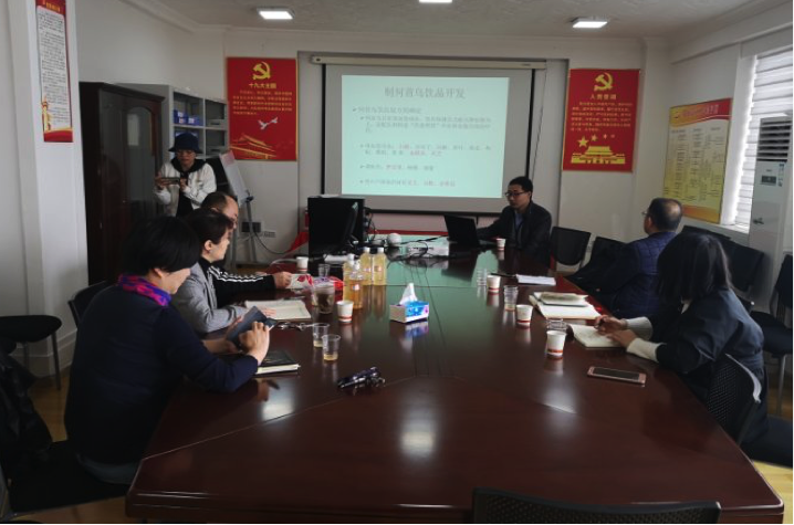 会上邹树良博士围绕何首乌项目饮品开发进行发言,并介绍了研发出的几款不同口味何首乌饮品。刘路宁对邹树良的汇报提出了建议,并表示统战部将全力支持何首乌项目第二阶段研究顺利开展。华岚、张振表示,食品药品制造工程学院将尽最大努力支持何首乌项目顺利进行,并确定了本周进行何首乌项目的实地调研计划。
