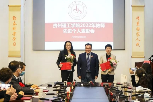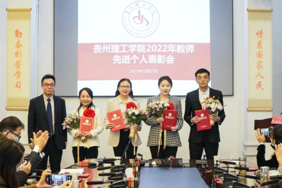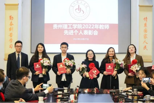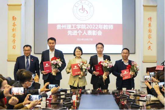 为深入学习宣传贯彻党的二十大精神,切实把全校教职工的思想和行动统一到党的二十大精神上来,进一步激发全校教职工奋进新征程、建功新时代的昂扬斗志,以崭新姿态和实干业绩,推动学校教育事业实现高质量发展。10月27日上午10时,学校在喀斯特会议厅举行“学习二十大精神,共话贵理工发展”2022年教师先进个人表彰会暨新进教师荣入仪式,对2022年学校评选出的教师先进个人和新进教师,致以崇高敬意和热烈欢迎。