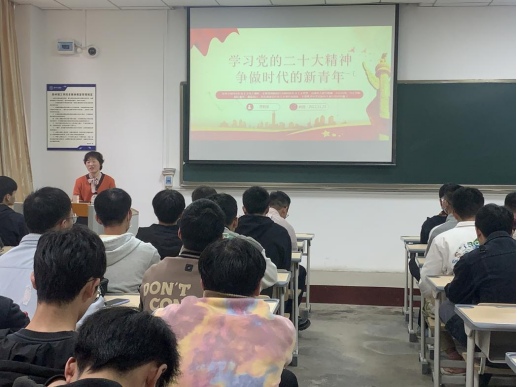 11月23日,交通工程学院团总支书记、学生科科长苏利荣走进交运201、交运202两个班级,以“深入贯彻学习党的二十大精神,争做时代的新青年”为题开展宣讲,勉励同学们自觉肩负起历史赋予的神圣使命,做爱党爱国、信念坚定、能担重任的新时代青年,敢闯敢试、敢为人先,做自信自强、敢于斗争的新时代青年,让青春在全面建设社会主义现代化国家新征程上绽放绚丽之花。