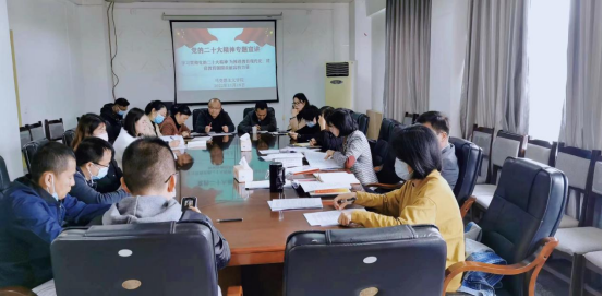 11月11日,外国语学院党总支书记徐焱以“学习宣传贯彻党的二十大精神”为题,围绕党的二十大主题和重大意义、过去五年的工作和新时代十年的伟大变革、开辟马克思主义中国化时代化新境界、新时代新征程中国共产党的使命任务、十二条基本方略五个方面对学院全体教职工进行宣讲。