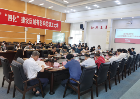 本网讯(招生就业处 赵欢)6月16日下午,贵州理工学院2023年毕业生就业工作第四次推进会议在喀斯特会议厅召开。校党委书记苏向东、分管副校长张开智出席会议。会议由招生就业处负责人主持。