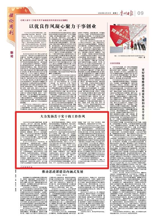 4月30日,《贵州日报》刊发校党委委员、纪委书记、监察专员贺梦依理论文章《大力发扬苦干实干的工作作风》,全文如下: