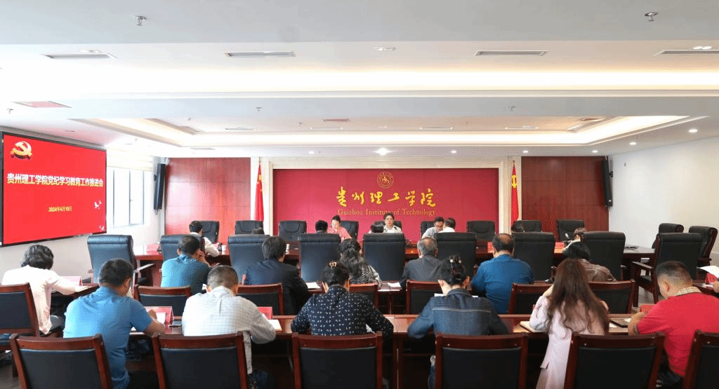 本网讯 4月19日上午,学校在知行楼605会议室召开党纪学习教育工作推进会。校党委书记苏向东出席会议并讲话,党委副书记高勇主持会议,党委委员、纪委书记,省监委驻贵州理工学院监察专员贺梦依出席会议。