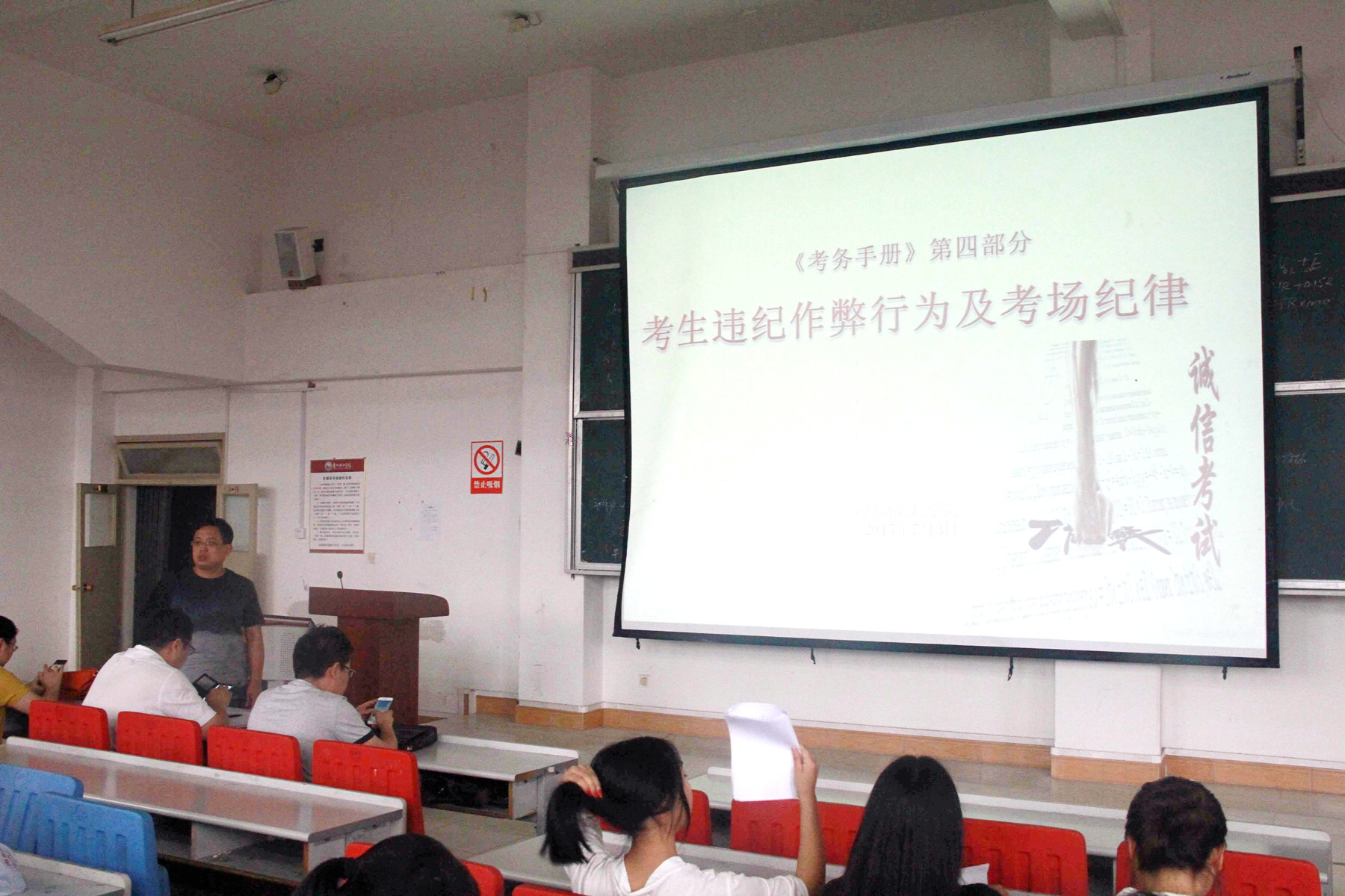 2015年7月3日,我院于上午8:30在三教416教室召开考前动员大会。出席本次会议的有孟碟院长、邹勇老师、各班班主任以及我院全体学生。