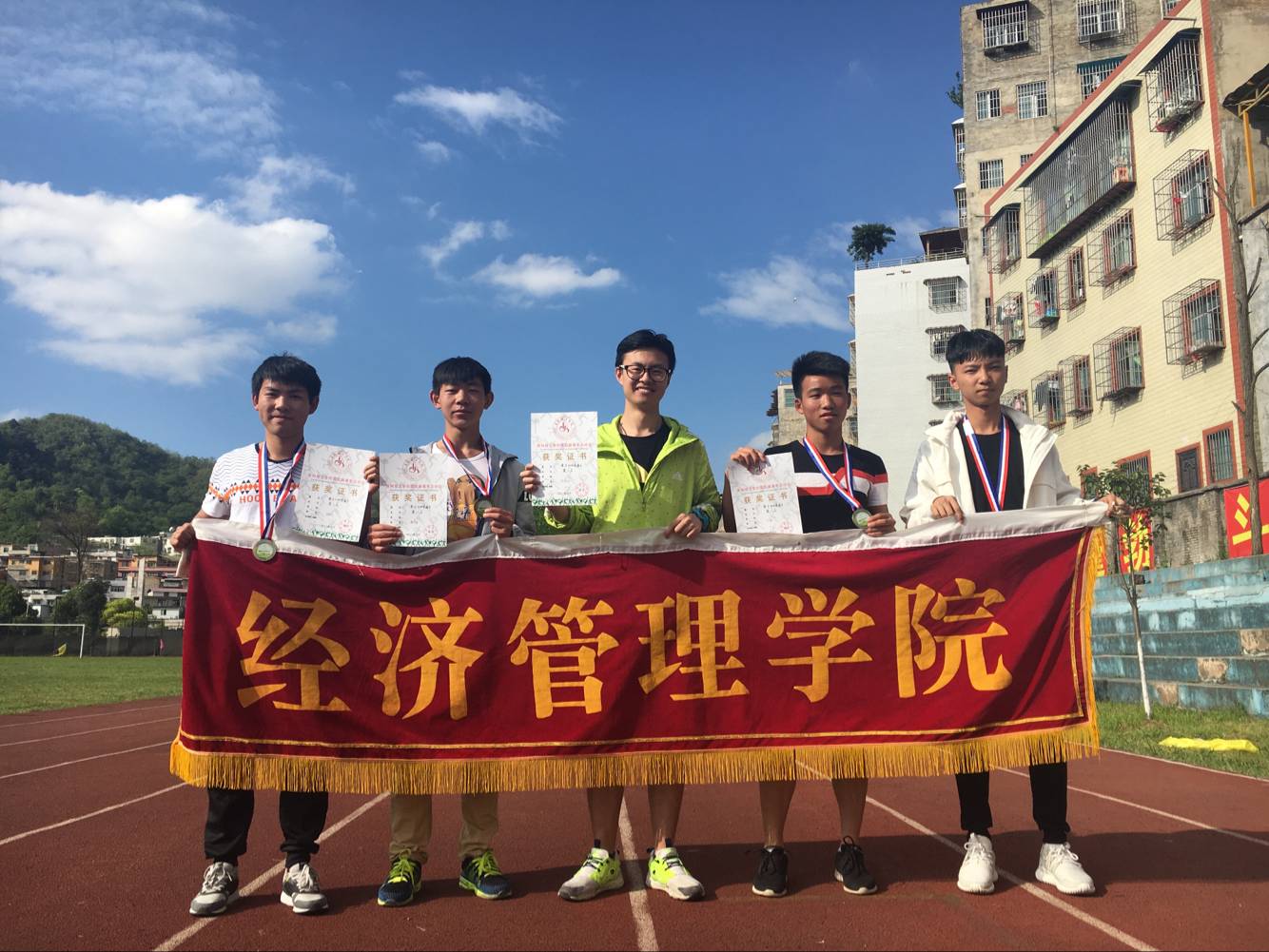 在很多项目中我院选手表现不俗,取得良好的成绩。16级新生刘锋,吴展政,钱明东,陈浩伦四人组成的团体在4×100米男子接力赛中荣获冠军的称号,刘锋同学在男子跳远比赛中取得冠军并打破学校记录。我院运动员们始终贯彻“生命中在于运动”的理念,注重运动的快乐,从运动中汲取生命的价值,彰显青春飞扬的活力,坚定超越自我的信念。