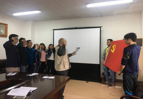 在我院国家社科基金获得者、教师党员龙前朋的带领下,全体党员同志面向党旗, 重温入党誓词,举起右手向党旗庄严宣誓。通过这样的形式,让党员同志牢记党旗下的庄严承诺,充分认识到“我是谁”“做什么”“怎么做”的问题,时刻牢记自己不同于普通群众的共产党员身份,进一步坚定理想信念,尊崇党规党纪,履行党员责任和义务,认真贯彻“两学一做”,践行“三严三实”,进一步强化政治意识和角色意识,凝聚力量,为推动经管学院建设发展贡献力量。