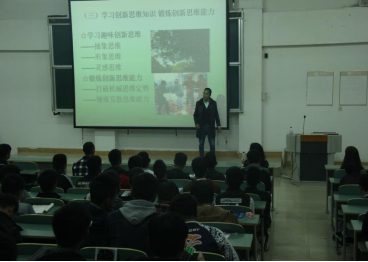 本次讲座,李博士以自创诗歌《双创少年赞》声情并茂开场,他从什么是双创、为什么要双创及怎么样双创三方面展开,运用多种案例,深入浅出、风趣诙谐的讲述了双创的概念、意义及实施路径等。最后,活动在全体师生共同《少年中国说》的朗诵声中圆满结束。