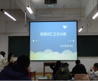 (本报讯 经济管理学院 张汝达/图 王枫/文)为培养同学们学习英语的兴趣,营造轻松愉悦的学习氛围,2018年12月13日晚,经管学院在3-113举行“最强词汇王”总决赛。参加人员有辅导员白桂霞老师、吴艳老师、林忠杰老师、20名参赛选手及各班代表参加活动。