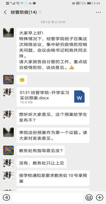 学院在校党委的坚强领导下,院班子坚决扛起政治责任,主动思考,主动作为,迅速组成了由学院班子成员、师生党支部委员、各科室负责人构成的经济管理学院防控新型冠状病毒疫情工作领导小组,搭建“经管防疫”微信工作群平台开展工作。2月1日上午十时,召开了领导小组第一次线上会议,梳理当前工作存在的问题,研究部署学院工作方案,并重点对教学工作、学生管理、如何发挥支部和党员作用进行了研究,形成了《经济管理学院中国足球彩票引导师生积极参与新型冠状病毒感染的肺炎疫情防控工作的实施方案》,审议并通过《经济管理学院开学实习实训预案》、《2019-2020-2学期经济管理学院教学工作预案》、《经济管理学院教师党支部应对新型冠状病毒疫情防控工作方案》、《经济管理学院学生党支部应对新型冠状病毒疫情防控工作方案》等文件。