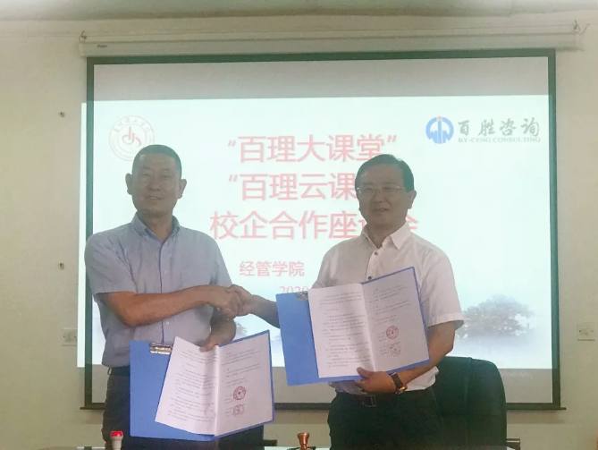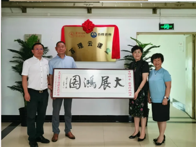 6月23日上午,贵州百胜工程建设咨询有限公司与贵州理工学院经管学院共同创办的“百理云课堂”揭牌仪式在理工学院教学实验大楼隆重举行。经管学院杨雁书记、杨岗营院长、邹勇副书记、周曙东副院长、土木工程学院贺明卫副院长;百胜咨询夏思阳董事长、省造价协会陈丽美会长及百胜管理团队共同出席了本次揭牌仪式。