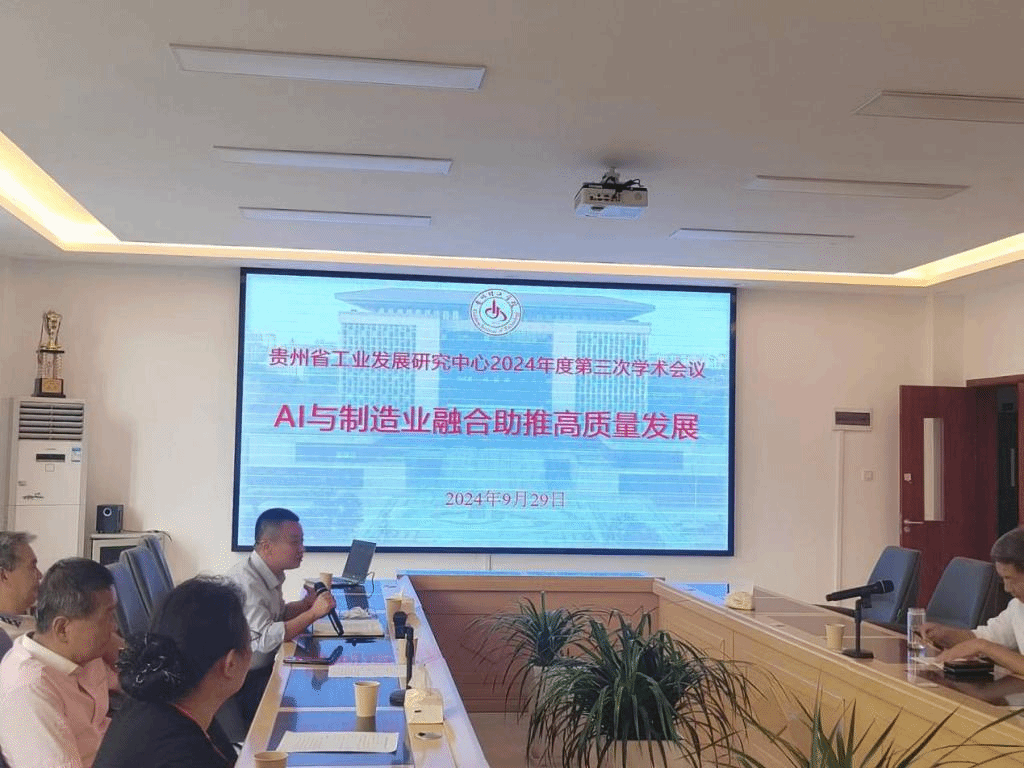 2024年9月29日,贵州工业发展研究中心主办、多彩贵州酱酒产业发展有限公司承办的本中心第三次学术会议,在贵州理工学院成功召开,会议主题是“AI与制造业融合助推高质量发展”。本次学术会议由中心执行主任费继东主持,中心兼职研究员、河南日报报业集团总工程师王军博士担任主讲嘉宾,来自政府、高校、产业界的近20名代表与会,共同深入探讨了在新时代背景下AI与制造业深度融合助推经济高质量发展的重要意义和实施路径。