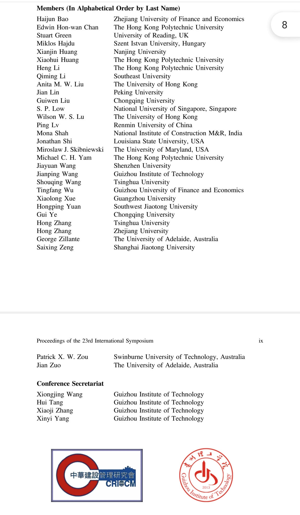斯普林格(Springer)出版社有着150多年发展历史,是世界上最大的科技出版社之一,以出版学术性出版物而闻名于世。此次会议论文集在斯普林格出版,正是说明了研讨会的学术价值,相信论文集中的研究成果将对建设管理和房地产领域产生重要的学术影响。