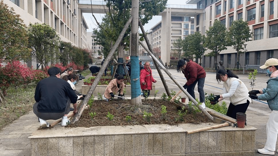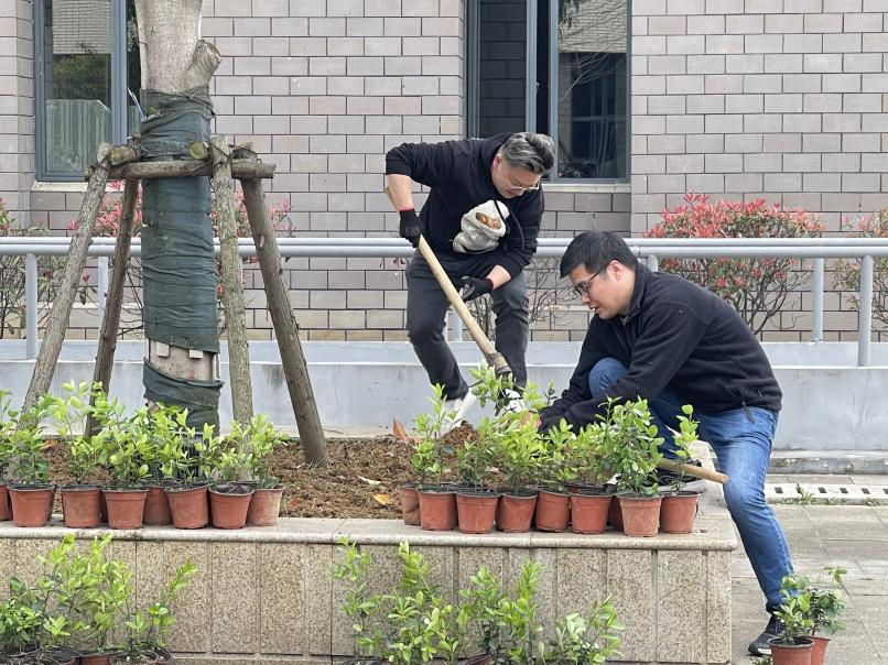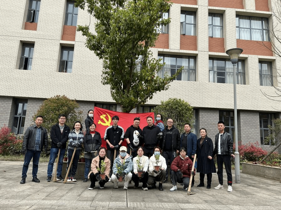 第二个阶段,师生支部的党员赴新校区开展学雷锋植树活动。