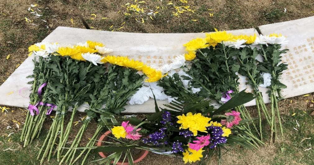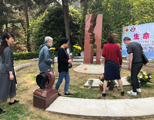 参加活动的爱心人士、志愿者献花致敬捐献者