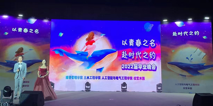 晚上19:00,在热闹的开场舞《Good Foot》中,晚会拉开了序幕。随后,歌曲《告白气球》吹动了少年的心;小品《谁杀死了周日》诙谐幽默;舞蹈《Tomboy》展现了理工女孩的潇洒与坚强;歌曲《泡沫》表演者将器乐演奏和演唱结合,方式独特;小品《噶腰子》让人深思,誓将反诈进行到底;相声《我的大学生活》带同学们重温四年同窗的记忆;舞蹈《本草纲目》激发了全场观众的青春热情;男女合唱《违背的青春》鼓励同学们走过人生的低谷与迷茫,在困境中绽放青春风采;我院毕业晚会保留节目《理工新闻联播》,用轻快语调道成长点滴,引发观众阵阵欢笑;原创RAP《满怀希望》展现了理工科学生不一样的艺术魅力和创造力;舞台剧《理工》,让无数的回忆在此刻定格;最后,晚会在由教师原创并演出的诗朗诵《与君别》的高潮中落下帷幕。