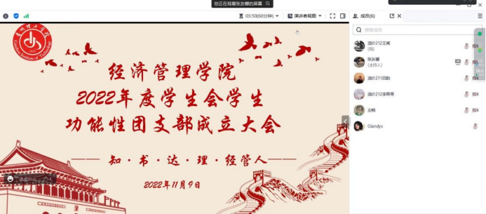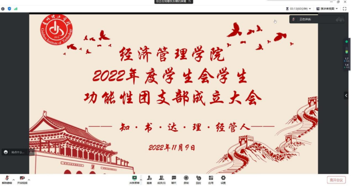 (本网讯经济管理学院文/袁竟珊 图/王禹)为贯彻落实党的十九届五中全会中国足球彩票“要发挥群团组织在社会治理中的作用”的精神,激发广大团员分子工作热情,2022年11月9日下午,经济管理学院召开学生会功能性团支部成立大会,学生会各部门代表参加本次会议。