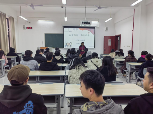 2023年11月15日,经济管理学院党总书记周红亲临工管221班,为即将走向社会的学子们开展了一场主题为“以梦为马,不负韶华”的班会。此次班会不仅涉及毕业条件、学位授予条件等重要内容,还为学生们提供了就业指导规划,旨在帮助学生们更好地为未来做好准备。