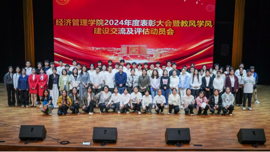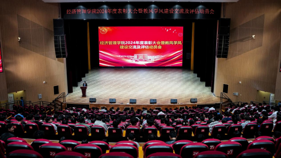 本网讯(经济管理学院 文/秦珍 图/卢贵科)为表彰先进典型、凝聚奋进力量,扎实推进本科教育教学审核评估工作,2025年5月15日,经济管理学院在蕴华楼大礼堂召开2024年度表彰大会暨教风学风建设交流及评估动员会,全院教职工及在校学生约800人参会。