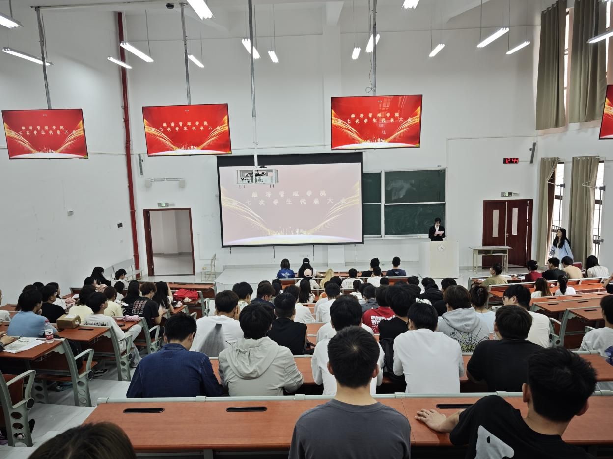 本网讯(经济管理学院 文/潘颖 图/吴伟)为加强学生会组织建设,充分发挥学生代表大会桥梁纽带作用,2025年5月22日,经济管理学院第七次学生代表大会在致知楼207成功召开。经济管理学院党总支副书记方燕,团总支书记、学生科科长张翊出席会议,经济管理学院各班学生代表100人参加会议。
