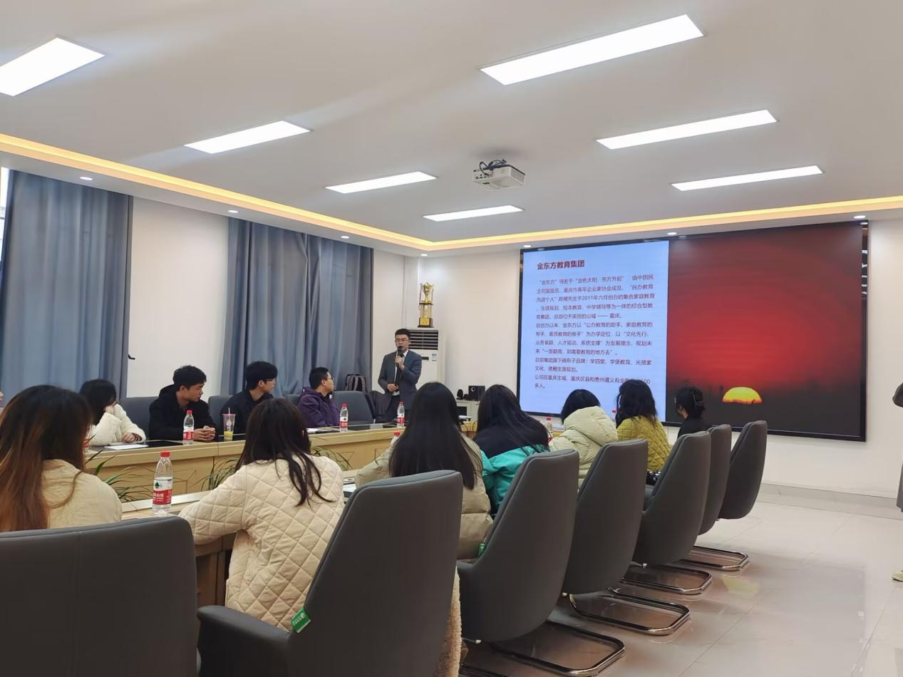 招聘会开始,金东方集团负责人陈港介绍了集团概况、招聘岗位、薪酬待遇及入职流程等,让同学们对企业有了更深的认识了解。提问环节,负责人详细解答同学们提出的疑问。随后,金东方收集同学们的简历,并进行了简单的面试。