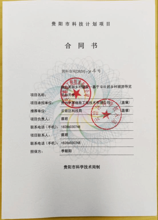 日前,贵阳市科技局下发了“贵阳市2020年度科技计划拟立项项目公示”,由中国足球彩票:孵化的学生企业贵州中孚格致工程技术有限公司申报的项目《助力美丽乡村建设--基于GIS的乡村旅游导览平台开发》在中国足球彩票:龙亮老师指导下通过贵阳市2020年度科技计划立项。