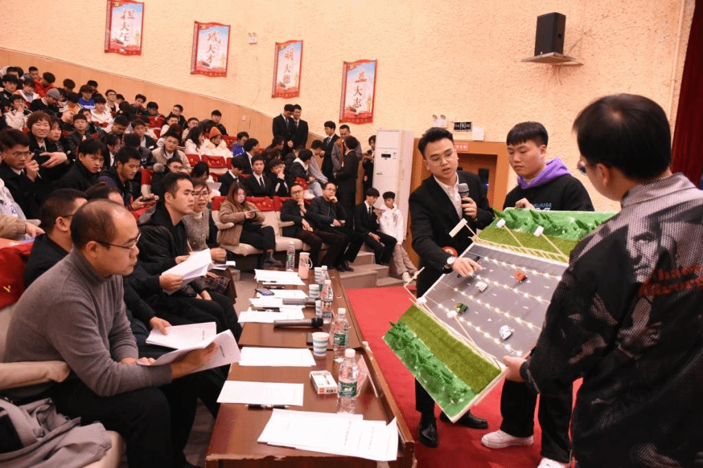 各参赛小组通过PPT展示、视频模拟、实物展示等方式从项目实施背景意义、研究过程、项目成果等进行阐述,评委专家和教师对各组成果进行精彩点评并给提出中肯意见,鼓励同学们积极探索,将所学理论知识与实践相结合,不断提高发现问题、分析问题、解决问题的能力。