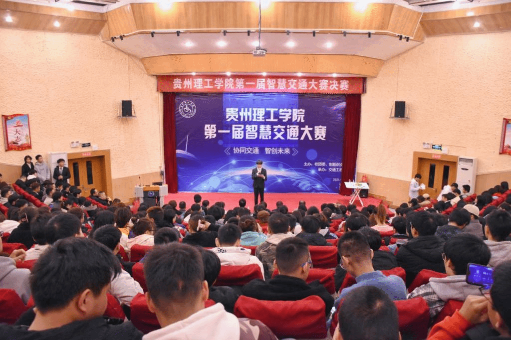(本网讯交通工程学院图文/王港)推动交通强国建设,科技创新引领未来。2021年12月1日晚19:00,由交通工程学院承办的贵州理工学院第一届智慧交通大赛决赛在逸夫小报告厅举行。贵阳市交通发展研究中心主任钟宇、贵州公路学会副秘书长向一鸣、贵州省交通规划勘察设计研究院科技处副主任王维利受邀担任此次比赛专家评委。交通工程学院党政领导、全体教师及400余名学生走进现场。
