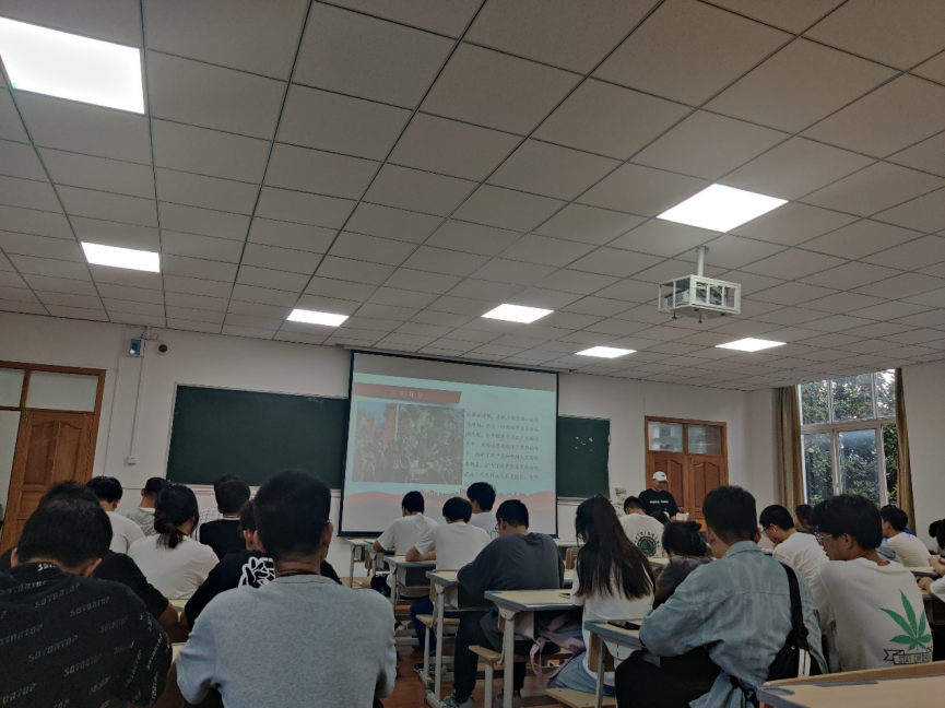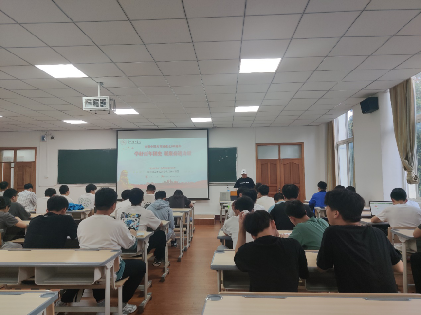 本网讯(交通工程学院 图文 王港为庆祝建团100周年,通过团史学习感悟革命先烈与青年模范的先进事迹,明晰团的发展历程与基本组织框架,2022年5月25日,百年团史学习第四期——“奋进在大革命洪流中的青年团活动”主题宣讲在2-211教室举行。贵州理工学院大学生宣讲团成员、交通工程学院王港同学,面向经济管理学院造价201班和工管202班全体同学开展宣讲。