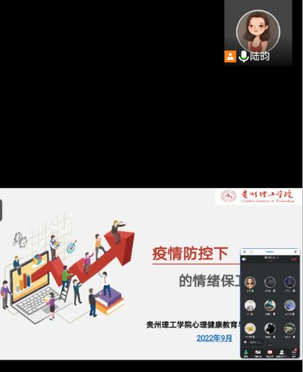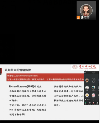学生工作部心理健康中心主任陆昀以当前疫情为背景,给同学们分析情绪管理的方法和重要性。对于常见的几种情绪如焦虑、嫉妒、抑郁、愤怒、孤独等,同学们要学会合理分析每种情绪的利弊,正视自己的情绪。通过说出自我镇定的句子、体验当下情绪并留在当下、学会自我照顾、培养积极情绪等四种方法管理好情绪,告诉同学们每个人都是自己情绪的主人,在当前疫情严峻形势下,不恐慌、不信谣、不传谣、正确看待疫情带来的影响,相信国家疫情一定会很快胜利的。