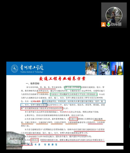 教务科副科长陆艺从培养方案、学籍管理、教学与考试、毕业要求四方面给学生进行全面讲解,告诉学生学院要培养什么样的人、通过哪些课程与环节培养人、怎样培养人,重点讲解《贵州理工学院本科学生学籍管理规定》《贵州理工学院2022届普通本科毕业生学士学位授予实施细则》《贵州理工学院学生学业违纪预警办法》《贵州理工学院学生考试违纪和作弊处理办法》等4个教学文件。通过讲解考勤管理、考试规定、毕业审核等培养学生规则意识,使学生明白“凡事预则立不预则废”的道理。